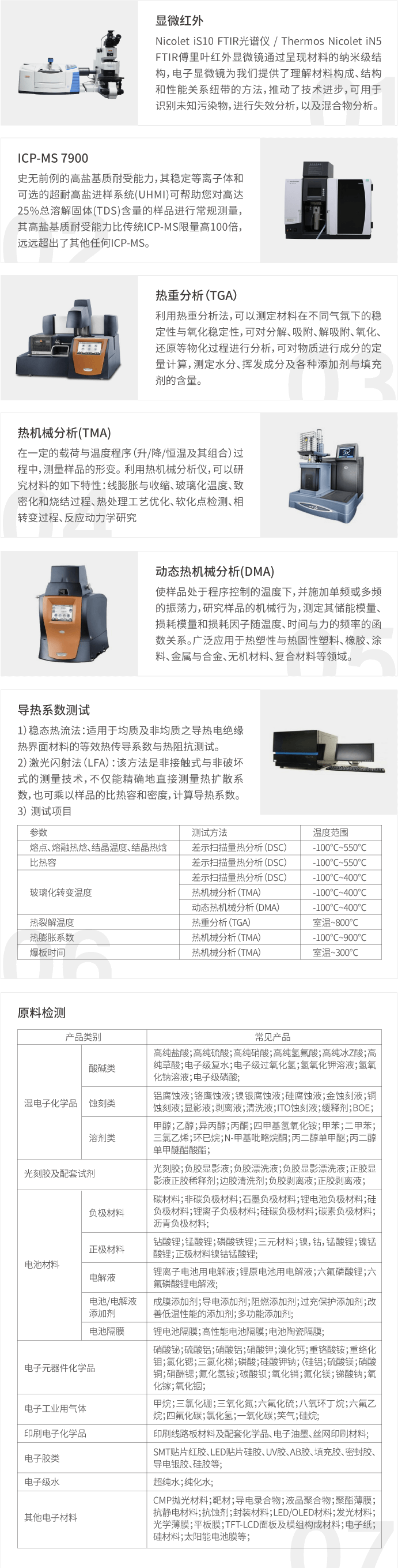 半导体相关产业材料测试表征